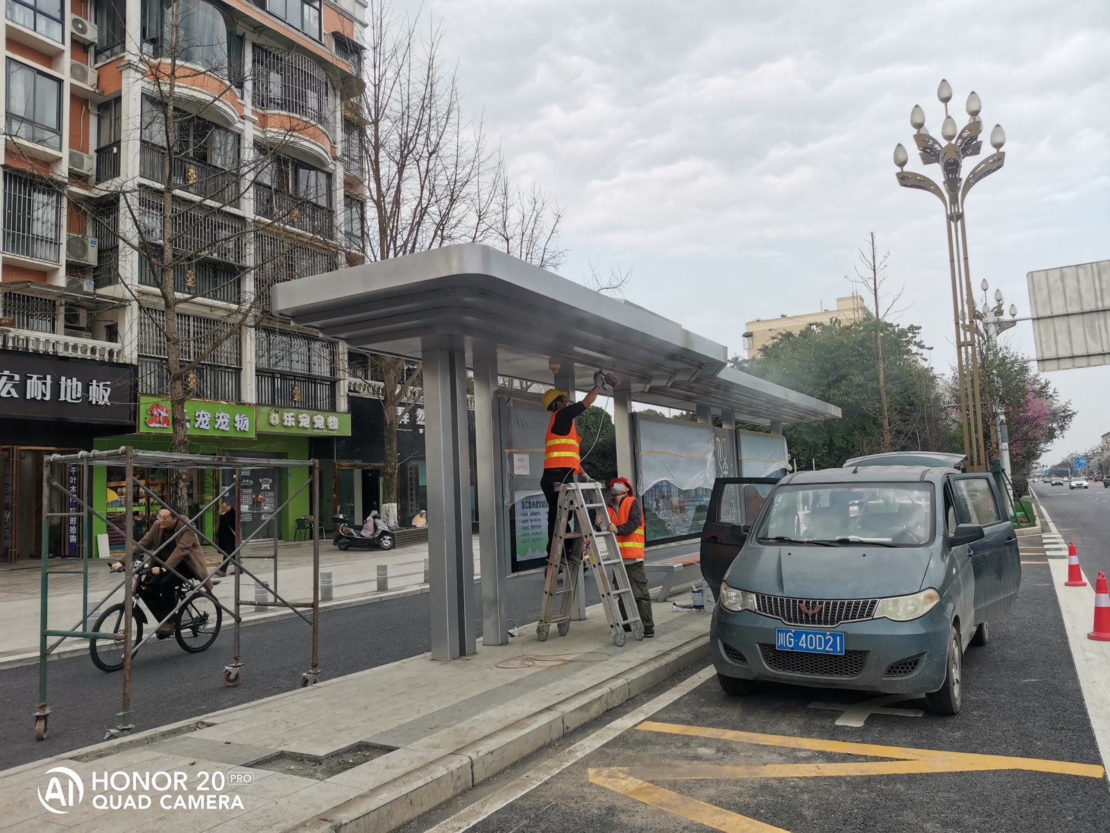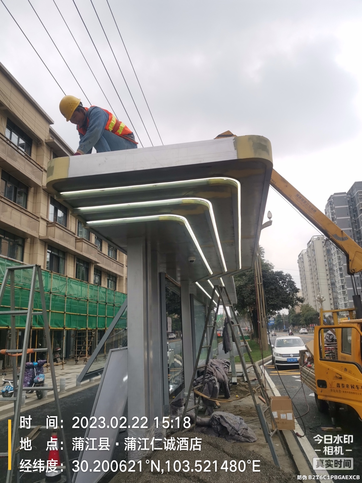 由我公司承建的四川蒲江朝陽大道、鶴山北路城市道路空間一體化改造項目--智慧公交站臺工程圓滿完工,造型呈一字形公交站亭,頂棚融入LED氛圍燈照明、每座站臺實現安全監控、電子報站、座凳充電、地域特色LOGO。